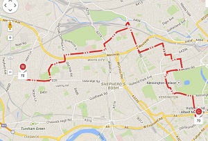 Currently the 70 runs between South Kensington and Acton approximately every 10 minutes (Monday to Saturday daily), every 15 minutes during Sunday shopping hours and every 20 minutes late evenings.