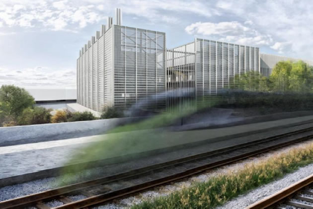 A visualisation of the proposed data centre viewed from across the railway tracks. Picture: Scott Brownrigg