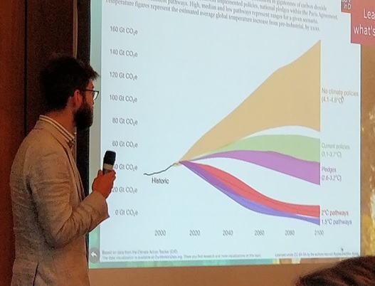 Not very good at selecting what to take pics of but this slide grabbed me, so I grabbed it. It shows what would happen with no policy, current policies, and what we have to do to limit temperature rise. Doing nothing, I would advise learning to swim and to live without food and water.