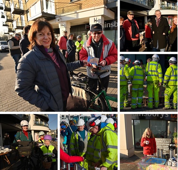 Saturday morning Hounslow Cycling put on a builders breakfast down by Kew Bridge to celebrate the start of works on Cycleway 9. I go down to offer support but have to leave before the photo-opp (and the breakfast, which I think was less than veganuary) because I have surgery at the library. Anyway somebody gets me in my silly hat (which I’ve now managed to lose, some will say thankfully) standing next to Jeremy Vine to prove I was there earlier!