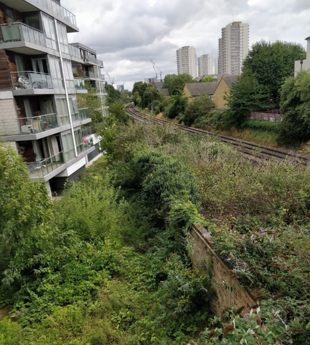 One of the things mentioned is access to natural environments for play. A couple of years ago I noticed there's quite an extensive space, quite safe I think, in a kind of a trench between the Great West Quarter development and the railway line. It's quite lush, and the kind of unkempt common land me and my pals used to mooch around in playing cowboys and Native Americans or Evil Germans and Englander Pig-dogs (it was a different age) when I was about 10. Nothing much like that around here – wouldn't it be nice if we could open this space up? The picture makes it look narrow but it is an irregular shape and gets quite wide in places.