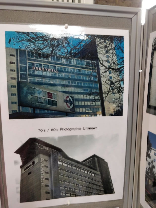 During the afternoon I paid a brief visit to the Steam Museum to look at Karen ‘'@ Brentfordthrumylens' Reader's small exhibition there. Some lovely ‘then and now' pics. You can see it Thursdays, Fridays and Saturdays 11am – 3pm until 26 September and it's a highly recommended way of spending 15 mins. This one brought back plenty of memories. I got a new job within Honeywell back when and more or less the first thing I had to do was to organise taking down the ‘Honeywell' sign from what was then called Honeywell House and replacing it with a ‘Honeywell Bull' sign, which later became Bull.
