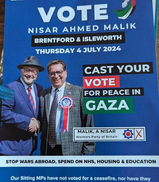 It was sad to see – well, not really – my old colleague Nisar Malik who has now become the Worker’s Friend, standing for George Galloway’s party, perhaps supported by his old mate (and George’s) Theo Dennison. Sadly he trailed in a poor sixth.