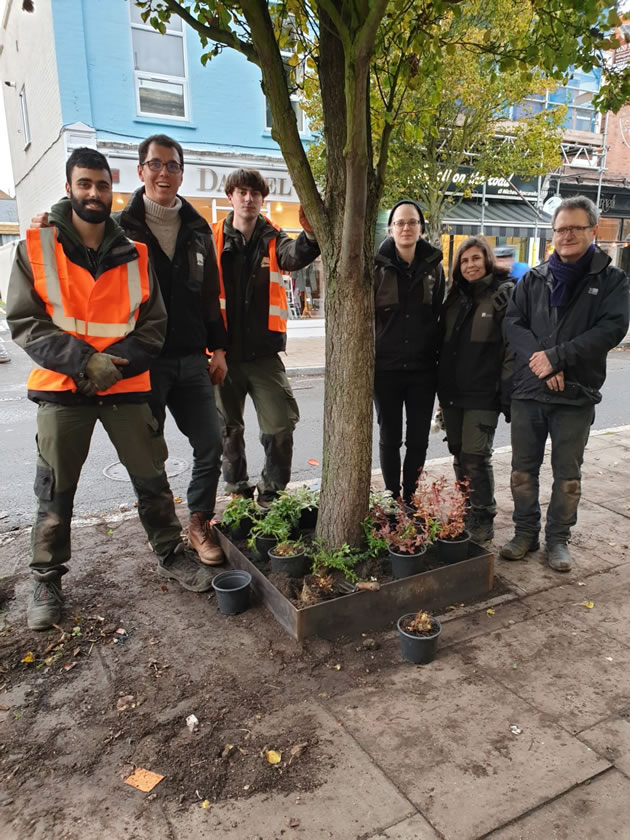 Abundance London, in partnership with the London Borough of Hounslow, Hounslow Highways and Stefano Marinaz Landscape Architecture, today carried out planting improvements around the William Hogarth statue and the tree pits in Devonshire Road. Specially-commissioned stylish steel edging, with bulbs and plants providing year-round interest were installed on Friday (22nd November). The new planting will lift the entrance to Devonshire Road and prevent some of the ongoing littering, as well as greening the area. The edging and plants were funded by the government's High Road grant via the council. There is considerable evidence that green spaces improve civic pride, mental health and of course biodiversity.