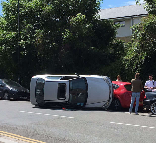 There were road closures in Chiswick this Monday morning (22 May) after a car overturned near the Grove Park Bridge.