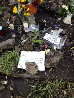 Local people have continued to leave flowers and children's drawings at the patch of ground near Welstead Way where Anne Naysmith tended a patch of ground.