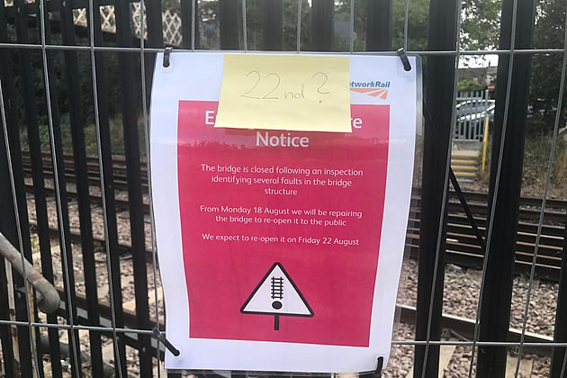 Despite the missed deadline, Network Rail’s revised timeline means the bridge could reopen in time for the start of the new school term, restoring a vital connection for families and easing pressure on local routes. Councillors have continued to call for clearer communication and signage to prevent further disruption. A sign promising reopening on 22 August remains by the site prompting one resident to place a post it note with a question mark on it.