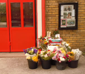 Chiswick resident Mike Abbott took this photo (right) of the flowers and tributes laid in memory of Thomas Ossel outside Chiswick Fire Station where he was based.