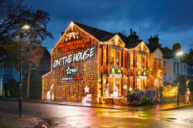 Energy supplier EDF Energy has unveiled a festive marketing campaign offering customers eight hours of free electricity on Christmas Day, brought to life by transforming a real home in Chiswick into a spectacular light display on St. Mary's Grove.