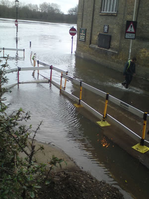 Work ceased when the men realised they couldn't stem the rising tide which had flooded Chiswick Mall and created a moat around Fuller's Brewery.