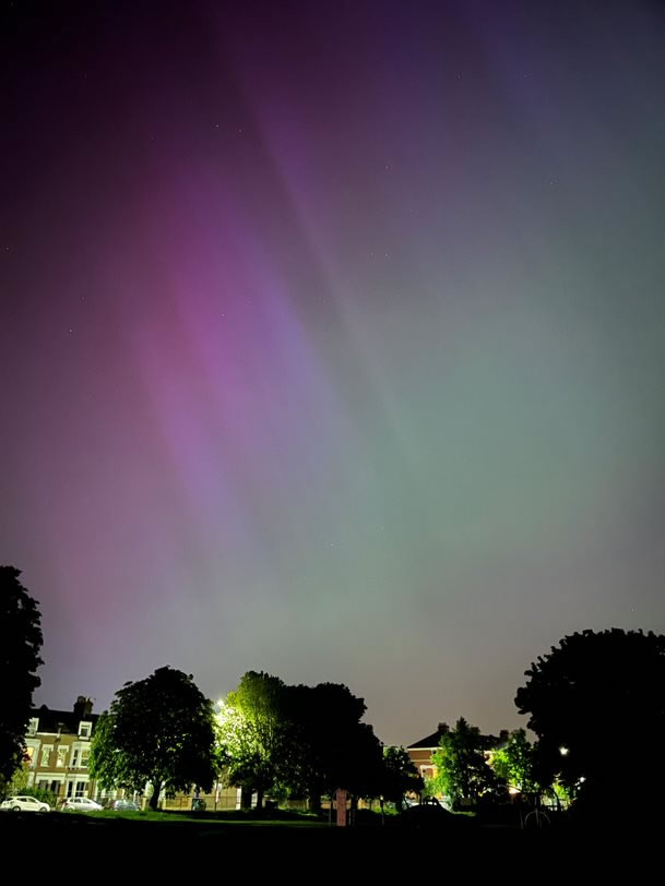This was the most intense solar storm since 2003 and the Sun is approaching a ‘solar maximum’ in an 11-year cycle where there are more Sun spots on its surface. These spots are made by Coronal Mass Ejections (CMEs) which cause huge volumes of charged particles to shoot out from the sun. These eventually hit the earth’s atmosphere and they create a range of colours between purple and green due to the high Oxygen and Nitrogen content. This has led to the Northern Lights being visible in the south of England occasionally this year, but this is the first time during this cycle that they have been seen in Chiswick.