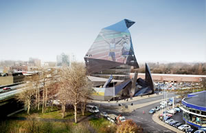 Although the proposed building is smaller in terms of bulk and mass, it is no less prominent due to its design and high-level LED screens.