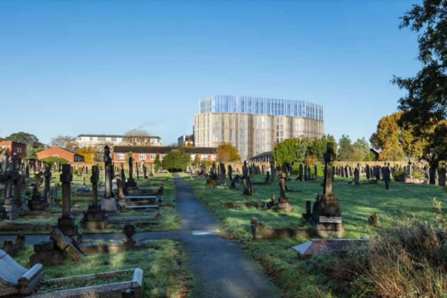 A CGI of the scheme as viewed from the junction of Old Chiswick Cemetery. Picture: Simpson Haugh Architects