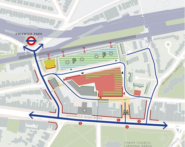 No indication has been given as to the configuration and height of the scheme although the developer says it will ‘respect’ the low-rise housing to the east in Bedford Park. A local property expert believes that 300 flats could be accommodated on the site, assuming much of the existing car park is taken over, with mansion block style buildings of 7 or eight stories. However, if fewer blocks were included the height of the towers would need to be significantly higher than the nearby Empire House.