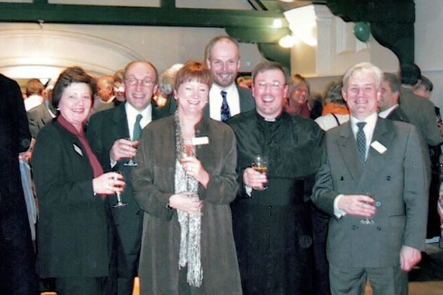 Opening party in 2001: Eileen McGregor (churchwarden), Oliver West (architect), Mary Pears (chair, Appeal Committee), John Scott (architect), Fr Kevin Morris, David Beresford (churchwarden). Picture: SMAAA