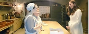 The Duchess of Cambridge - Kate Middleton - who's said to be a keen fan of the show - has been touring the 'downstairs' bit of Downton Abbey's set today. And included in the cast members she met were the three actors from Chiswick; Lesley Nicol, (Mrs Patmore), Elizabeth McGovern (Lady Cora), and Phyllis Logan ( Mrs. Hughes)