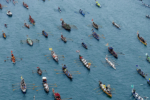 More than 330 crews from across the globe take to the Thames in a 21-mile challenge from London Docklands to Ham.
