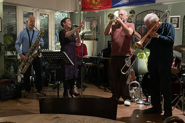 Guests include jazz vocalists Diane Slater, Isabel Saunders, Teresa Jennings, Stephan Olgoodson and very occasionally Tim Wacher, trumpeters Chris Hodgkins and Anthony Cox, Pete Clancy (Andrew and David’s dad) on trombone, Dave Alison on baritone sax and many others.