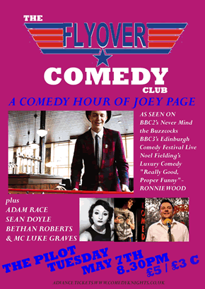 The Pilot is hosting a 'Comedy Hour of Joey Page' ( BBC2's Never Mind The Buzzcocks) along with Adam Race, Sean Doyle, Bethan Roberts and Mc Luke Graves.