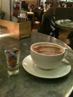 For dessert the Banoffee Lollipops provided a quirky touch. The lollipops (£4.95)are banana icecream and you dip them into the excellent caramel sauce and crumbs. The Brownies were unavailable and I didn't fancy icecream so I opted for a Hot Choctail ( £2.45) with a dash of Cointreau. I don't know how All Bar One make their hot chocolate but it was fantastic, really rich with a velvet texture and the inclusion of alcohol made it all the more delicious. The little glass of Smarties also compensated for not having a dessert.