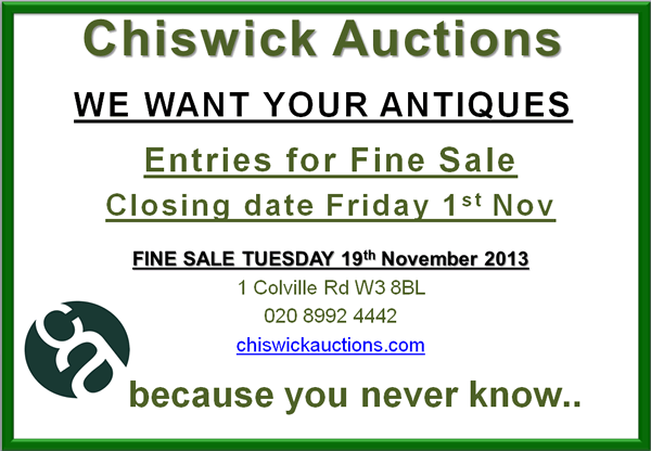 Chiswick Auctions is a fascinating place, full of surprises and bargains and as their company line goes: YOU NEVER KNOW.. in other words you could be sitting on a fortune..