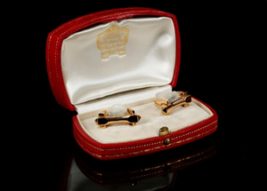Lot 464. A pair of c.1940's Cartier 18ct rose gold stirrup cuff links. Estimate: £300-£500