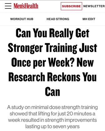 To explore the scientific evidence supporting minimal dose strength training, we recommend checking out this informative article from Men's Health: Minimal Dose Strength Training Article.