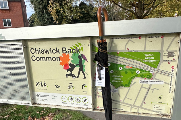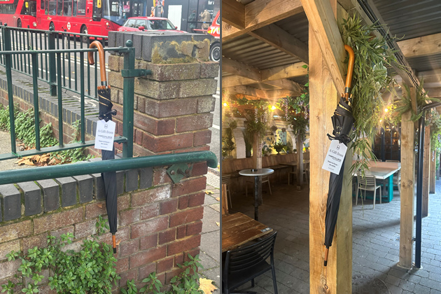 Every day for the next month, luxury Marmalade umbrellas will be left at public locations around Chiswick, from bus stops and cafés to park benches and shopfronts. Whoever finds them is welcome to keep them, no strings attached.