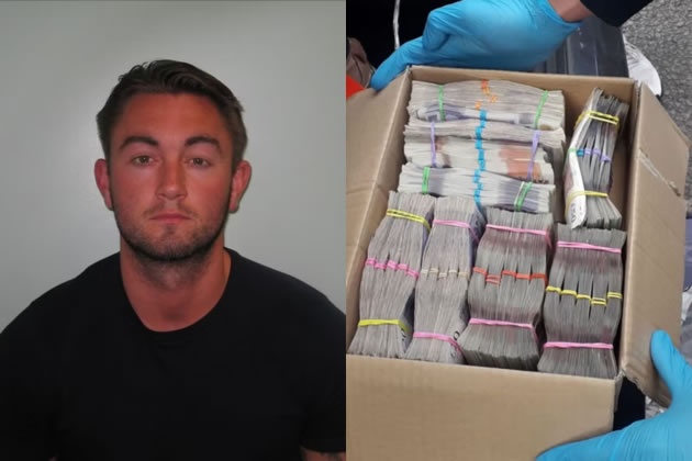 Left: Aaron Wise. Right: A box of cash found when the police arrested other members of the gang. Picture: Met Police