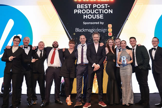 Sue Perkins (left) presenting the Halo team with an award. Picture: Halo Post Productions