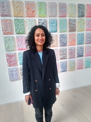 Rana Begum with her art work No 1082 Folded Grid 2021