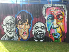 Christchurch's renovation hoardings on Turnham Green have over the last few weeks been transformed by original street art depicting famous figures synonymous with peace and justice.