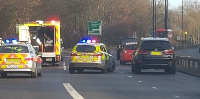 A man in his believed to be in his fifties has been taken to hospital following a collision between a car and a motorbike on the A3 close to Roehampton Lane.