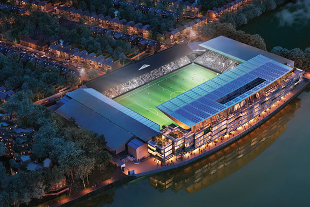 A visualisation of the completed Craven Cottage stadium. Picture: Fulham FC