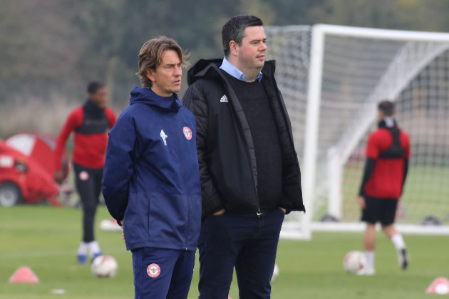 Rob Rowan (right) with Brentford's manager Thomas Frank. Picture: Brentford FC