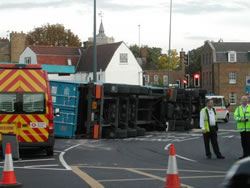 There was major traffic disruption Thursday (29th September) due to a container lorry turning over on its side by the Hogarth Roundabout. Although there are no reports of anyone being hurt, the incident caused tailbacks stretching back as far as junction 3 (Cranford) on the M4 and also affected westbound traffic back to Hammersmith.