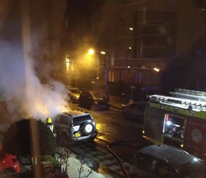 The front of a car parked facing south was in flames, and the fire soon spread to the car that was parked next to it.