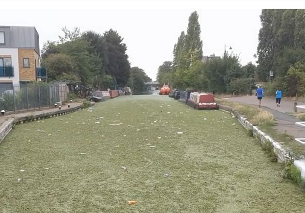 Daniel, who is also behind the campaign to make London a National City Park, is calling for more to be done to maintain the condition of the canal after making the film which shows the water covered with litter and duckweed this Monday (20 August). The rapid growth of duckweed is the normal consequence of the heatwave earlier in the summer. It absorbs much of the pollution in the water although its rapid growth starves the aquatic wildlife of oxygen and sunlight. Daniel is suggesting that, as has happened on the Thames, paddle boarders could make a difference in cleaning up the debris. The stretch of the canal, which is also part of the Brent river, runs from Southall to Brentford and into the Thames.