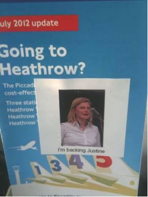 ‘I’m backing Justine’ posters have also been appearing on the underground, thought to be part of a campaign by West London residents to put pressure on David Cameron to keep Greening in post.