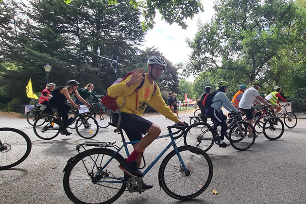 On Saturday 23 August, more than 30 cyclists gathered in Battersea Park for a ride and rally organised by Extinction Rebellion Wandsworth, Wandsworth Cycling Campaign, Greenpeace South West London, and other local environmental groups. The event aimed to raise awareness about air pollution and advocate for policy changes to improve air quality in the borough.