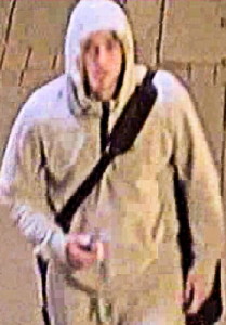 The third man is described as white, wearing a grey tracksuit and carrying a very large black shoulder bag.