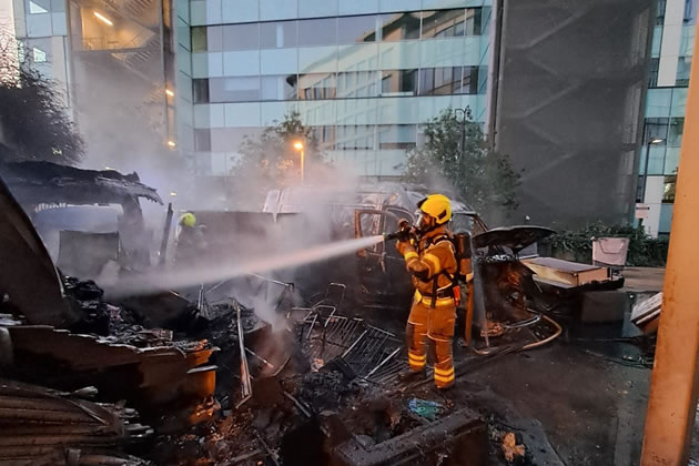 A fire involving three vans at the rear of a disused office building on Lakeside Drive in Park Royal prompted a large-scale emergency response on Sunday evening (21 September).