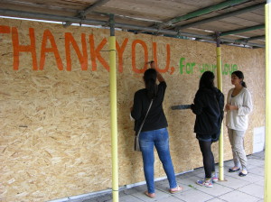 Deeply affected by what happened, the girls painted a simple message of thanks for the support shown by the local community.