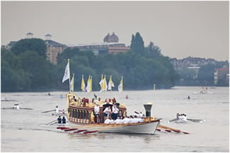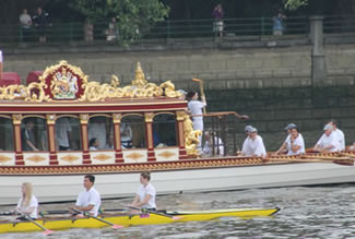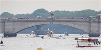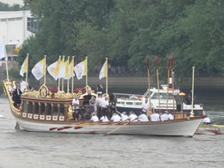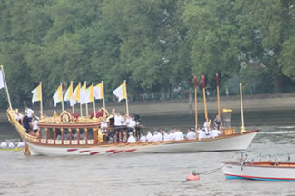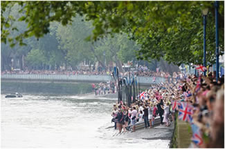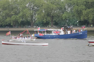 | Crowds on Putney Embankment | Patriotic supporters and unusual forms of transport! |