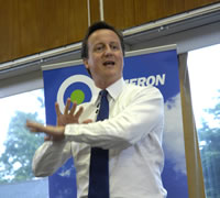 “I’m bored with politics,” Cameron announced to the sizeable audience, ““I’m here to show you that politics can make a difference that we do want to listen, to understand what’s important to you and to show you that with your help we can make a difference.”