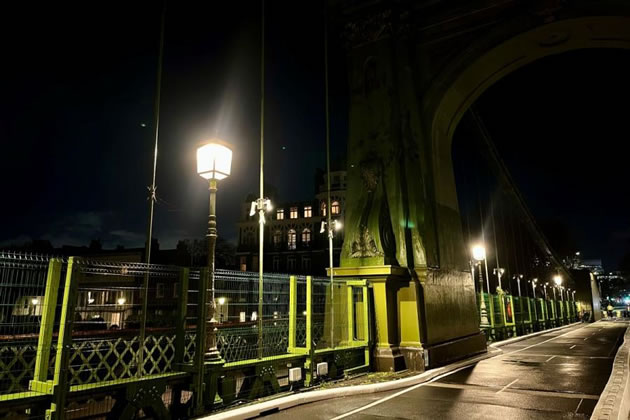 The new lanterns lighting up the bridge. Picture: H&F Council
