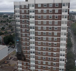 120 firefighters from 10 local stations tackled the fire on the seventh, eighth and ninth floors of a high rise block of flats overlooking Shepherd's Bush Green.