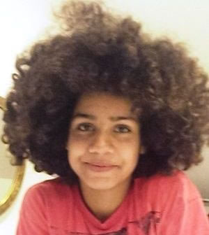 She is as a light skinned black girl, 5ft 2ins, of slim build with light brown curly hair. She has two horizontal lines shaved into one eyebrow.
