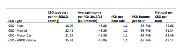 Currently, the existing CEOs, who are employed by SERCO, are issuing PCNs at the rate of 1.5 an hour and council officers expect that this may fall slightly as more staff are employed but there will still be a surplus if they continue to issue tickets at a rate of 1.1-1.3 an hour. The report does not state how many extra CEOs would be employed but does say that the increase in the number of CPZs has been 34% over the past five years with no corresponding increase in enforcement officers.