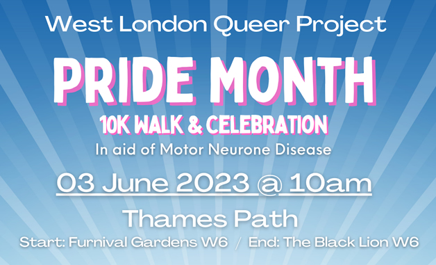 The West London Queer Project (WLQP) is kicking of International Pride Month 2023, on Saturday 3 June with a ‘10k Walk and Celebration’ by the Thames, in aid of Motor Neurone Disease